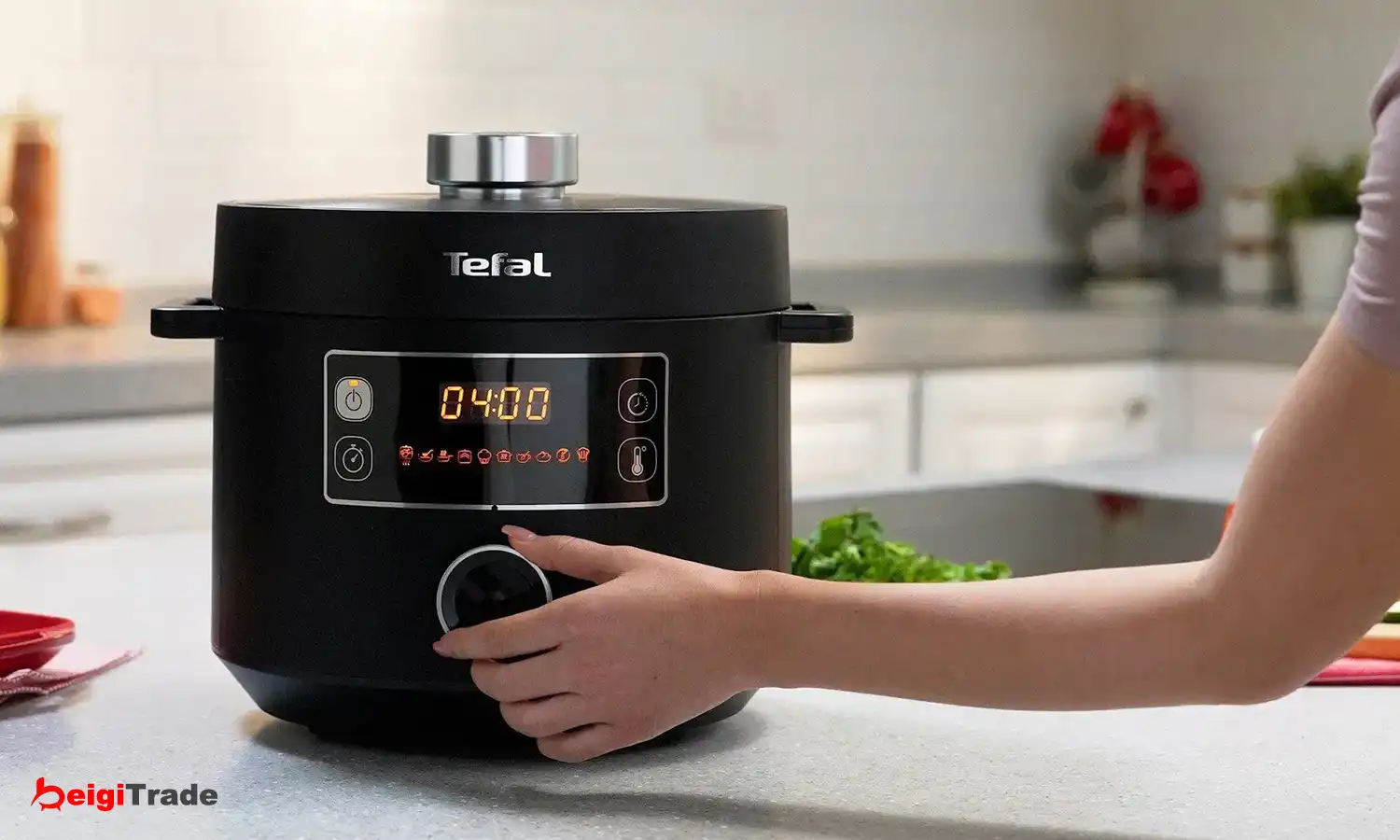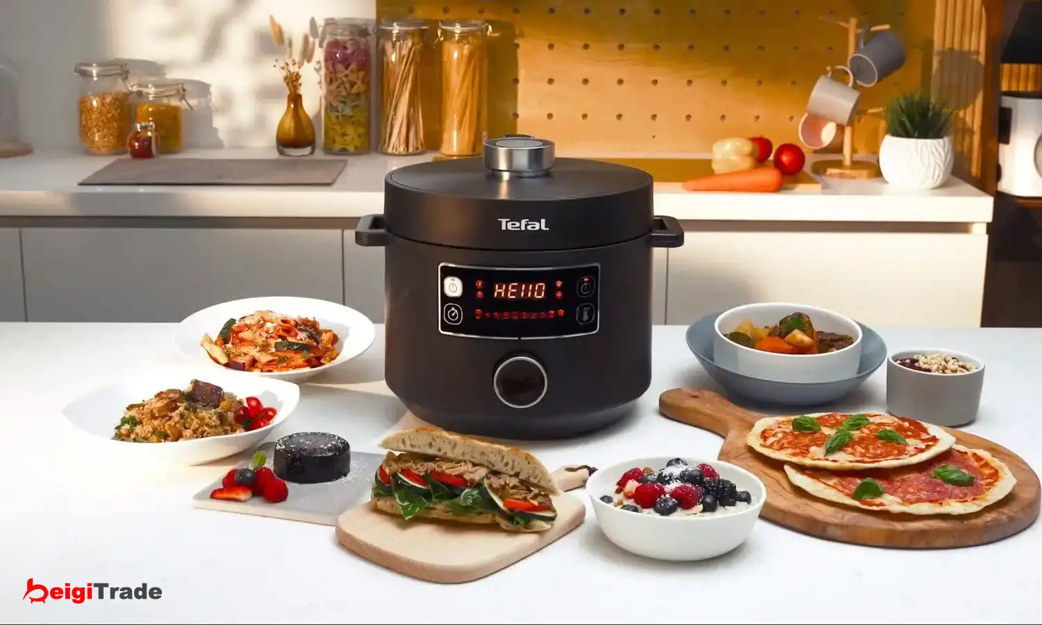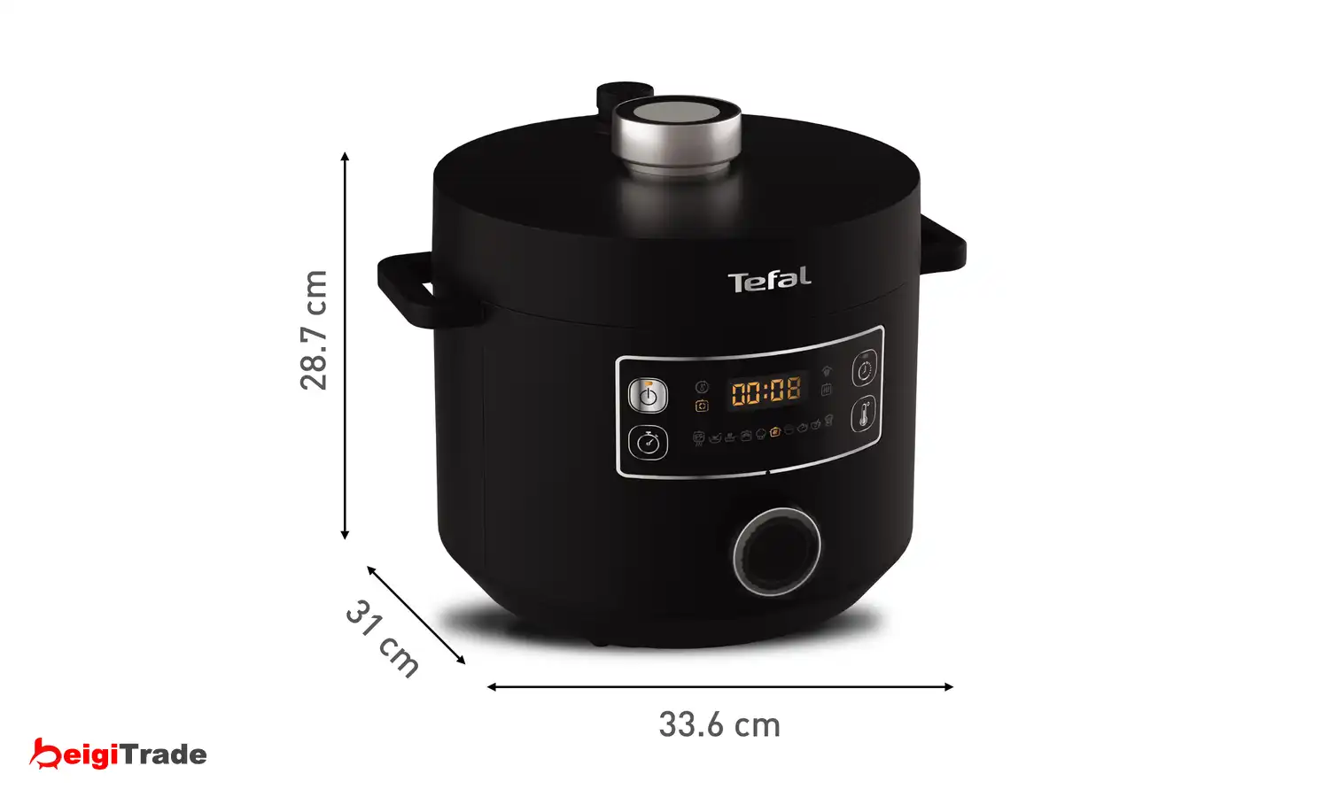 زودپز برقی تفال مدل CY754830 از سری Turbo Cuisine تفال یک مولتی‌کوکر چندکاره است که عملاً ترکیبی از چند وسیله آشپزخانه در یک دستگاه محسوب می‌شود. این دستگاه با ۱۰ برنامه پخت خودکار طراحی شده و می‌تواند جایگزین حدود ۷ وسیله آشپزی مختلف شود.