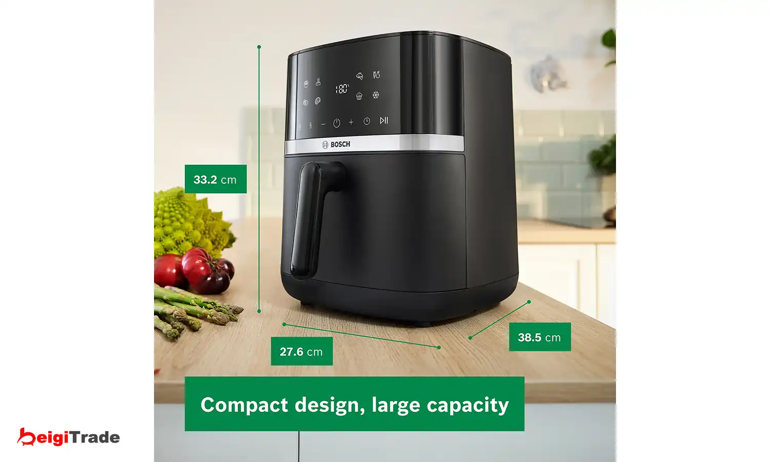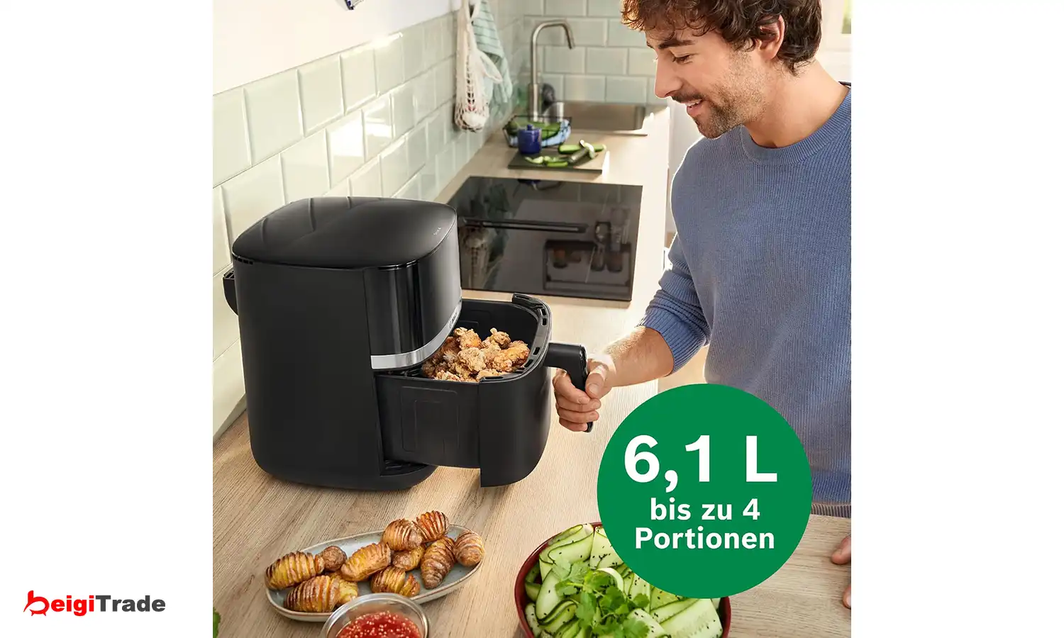 با ظرفیت جادار 6.1 لیتر، امکان آمادهسازی آسان تا چهار وعده غذایی بهطور همزمان فراهم شده است. این فضای مناسب، دستگاه را برای وعدههای خانوادگی یا دورهمیهای کوچک ایدهآل میکند و پخت یکنواخت انواع غذا، از سیبزمینی سرخکرده تا سبزیجات گریلشده، را تضمین میکند.
