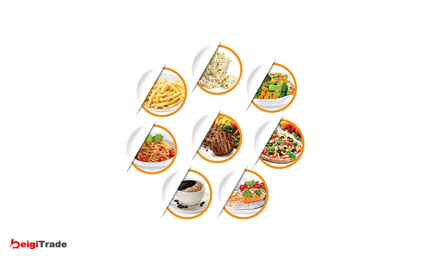 • منوی پیتزا، گوشت، سبزیجات، پاستا، سیب زمینی، ماهی، نوشیدنی و ذرت بو داده